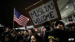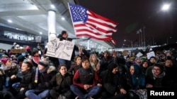 Протесты против указа Трампа о запрете въезда в США мусульманам.